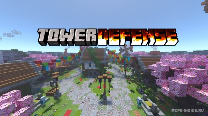 Добро пожаловать на карту Tower Defense! Защитите деревню от 18 волн мобов, не дав им дойти до выхода. У вас есть 5 жизней. Играйте одни или с друзьями. Виды турелей: обычная, взрывная, ледяная, электрическая. Стройте и улучшайте их для обороны. Ищите, активируйте и прокачивайте генераторы для увеличения дохода. Заметьте: 4 удара рукой наносят 1 урон.