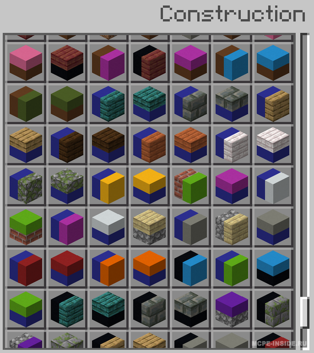 Мод предназначен для архитектуры и строительства. Он позволит комбинировать два ванильных блока на одном, что позволит создавать тысячи комбинаций.