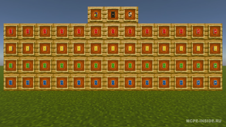 Модификация переносит классическую карточную игру "Уно"! Также добавлена самая обыкновенная колода карт., в том числе стилизованных под майнкрафт.