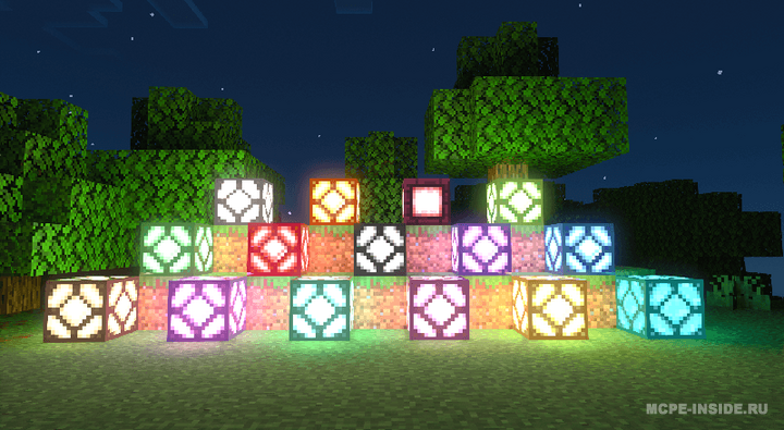 Попробуйте множество новых редстоун ламп различных цветов! Каждая из них светится так же, как ванильные лампы, но излучает свой особый цвет.