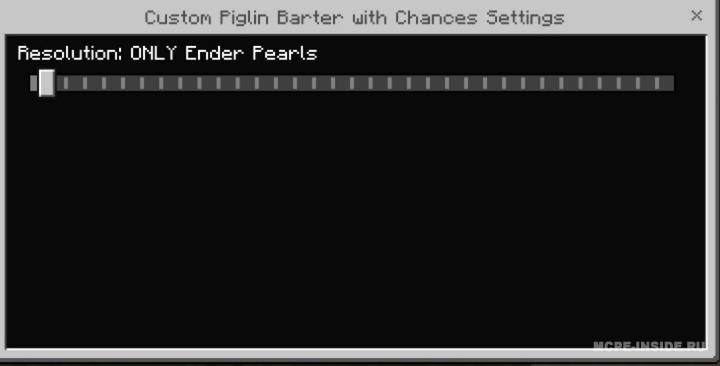 Кастомные обмены с пиглинами упрощают обмен с этими мобами, позволяя выбирать нужные предметы. Доступны три возможности: выбор конкретного предмета, настройка шансов выпадения или комбинированный вариант, устанавливаемые в настройках.