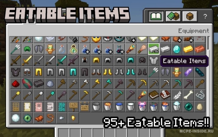 Этот мод добавляет 95 необычных съедобных предметов, включая оружие, броню и книги, которые можно приготовить в режиме выживания, комбинируя их со стейками. Он позволяет устраивать весёлые розыгрыши, например, угощая друзей алмазными мечами или книгами.