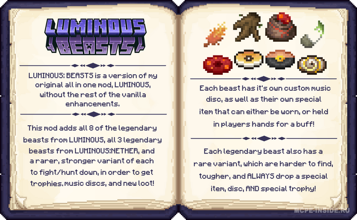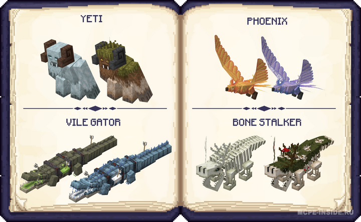 Модификация вводит новых фантастических существ, таких как древний Энт, снежный Йети, болотный аллигатор и другие уникальные мобы. Сейчас доступны лишь несколько существ.