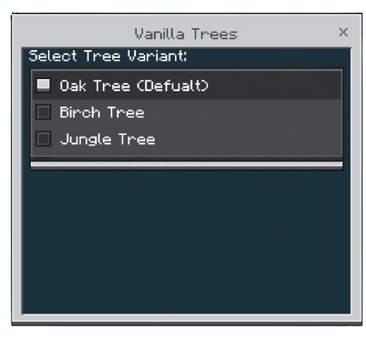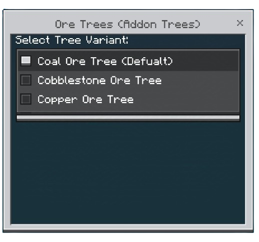 Модификация создает в Minecraft пустой мир в стиле Sky Factory с настраиваемым стартовым деревом. Доступны различные варианты, включая ванильные деревья (дуб, береза, мангровое и др.) и рудные (уголь, алмазы, железо и пр.).
