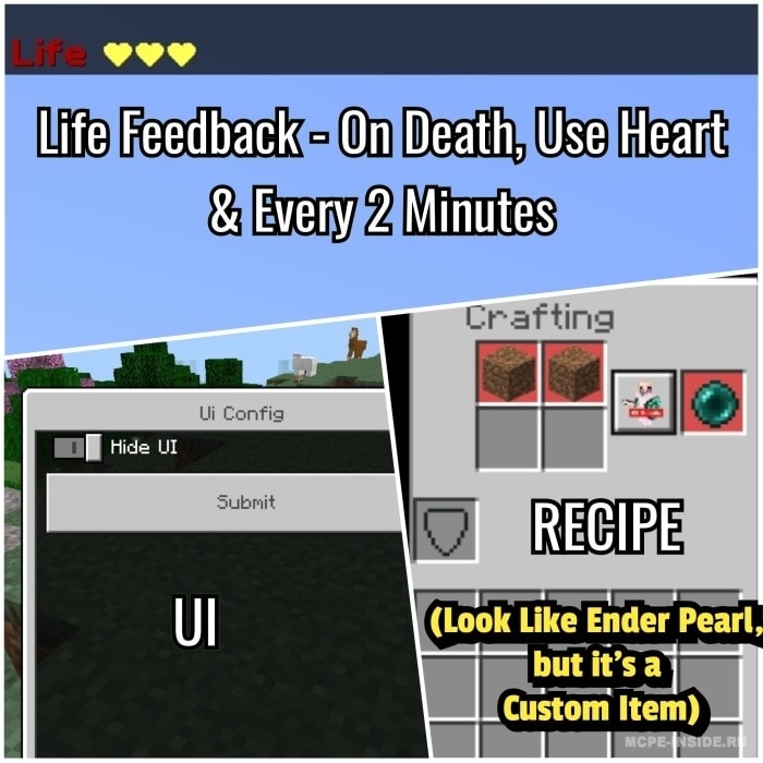 Модификация немного упрощает привычную концепцию хардкора: теперь у игроков есть 3 жизни, то есть 2 права на ошибку. Однако их можно восставить, создав особый тотем возрождения.