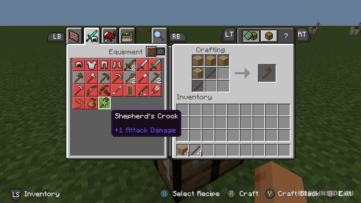 Пастуший посох — инструмент для управления животными: позволяет притягивать или отталкивать скот (овец, свиней, коров и др.) без вреда для них. Предмет имеет небольшую перезарядку и создается по определенному рецепту. Подходит для удобного контроля над мобами в игре.