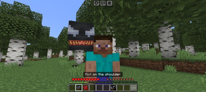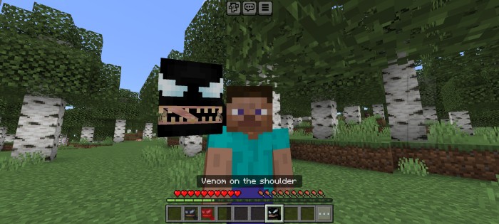 В майнкрафт появится три инопланетных симбиота с уникальными способностями: Венома, Буйство и Резню. Игрок может взаимодействовать с ними, а после победы над носителями получить их силы, уничтожив высвободившихся симбиотов.