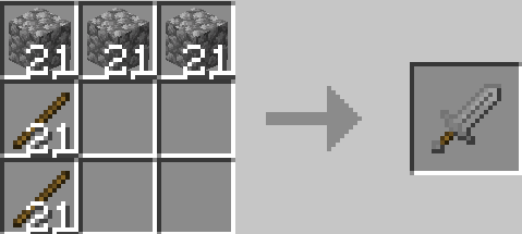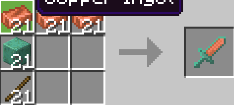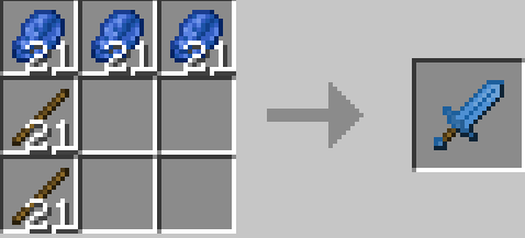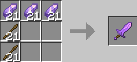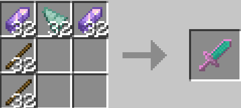«Больше мечей +» добавляет восемь новых видов широких мечей, которые наносят удары по увеличенному радиусу и обладают повышенной прочностью. Все они создаются по единому шаблону: три блока материала в верхнем ряду и две палки снизу. Включает варианты из камня, железа, меди, лазурита, изумруда, аметиста и их комбинаций.