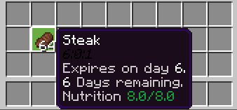 Теперь ваша еда станет реалистичной. У каждого предмета питания появится срок годности, и по его истечении просто нельзя будет есть. А также дополнительно показана степень насыщения.