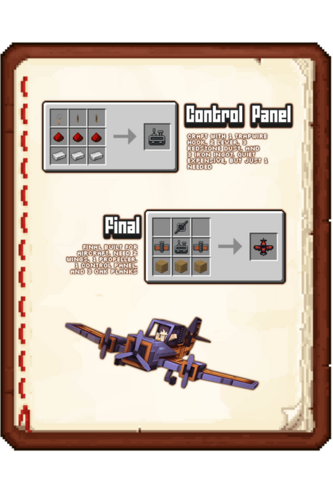 Модификация добавляет реалистичные самолёты с детализированной физикой полёта. Доступен моноплан с системой взлёта, топливом, шасси и анимированной кабиной пилота. Для полёта нужно разогнаться, заправить самолёт углём и правильно управлять им, избегая сваливания.