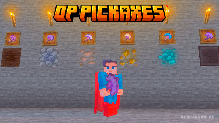 Модификация добавляет шесть улучшенных инструментов для добычи ресурсов в зоне 3×3, каждый из которых создается на основе ванильной кирки и дополнительных материалов. Уровень кирок прогрессирует: от деревянной (без чар) до незеритовой (с Фортуной III и Эффективностью V), упрощая добычу без нарушения баланса
