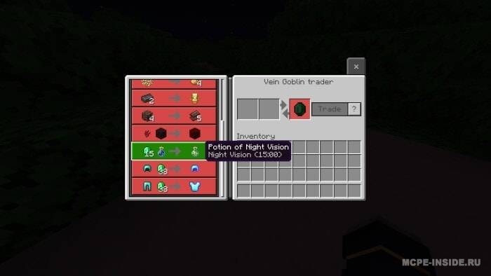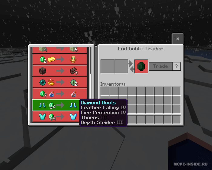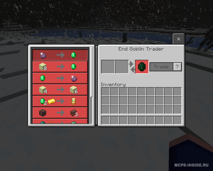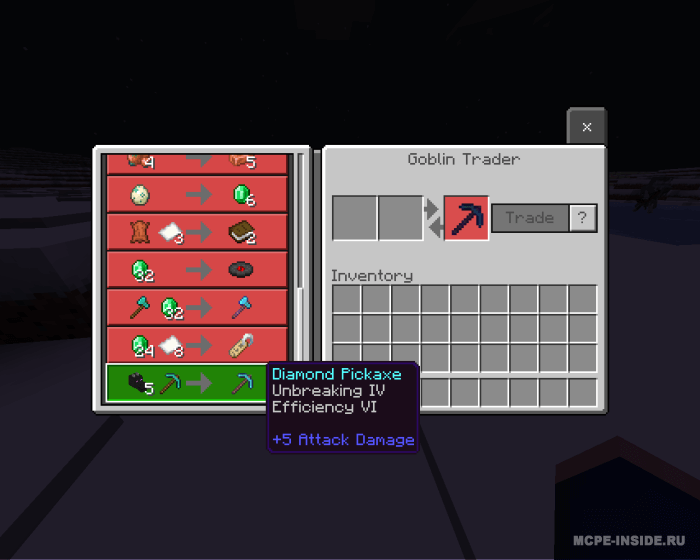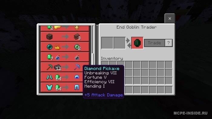 Встречайте новых торговцев-гоблинов, каждый из которых предлагает уникальные товары в зависимости от своего измерения - Обычный мир, Незер или Энд. Они продают мощные инструменты, броню и снаряжение, превосходящие стандартные возможности игры.