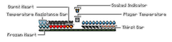 Данный проект вводит в игровой процесс режима выживания две новые механики: контроль жажды и температуры окружающей среды. Игрокам необходимо следить за соответствующими индикаторами, использовать специальную броню и предметы для адаптации к разным биомам.