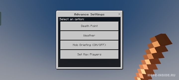 Модификация предоставляет расширенные возможности управления игровым миром без отключения достижений. С помощью особого интерфейса можно изменять погоду, просматривать координаты смерти, настраивать лимит игроков и управлять поведением мобов.