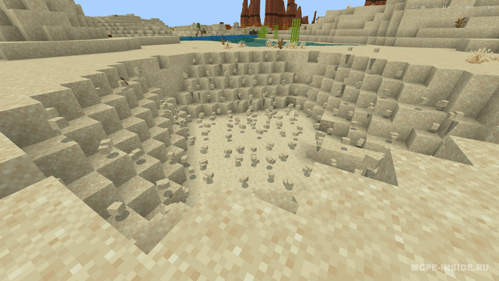 Теперь вы сможете намного быстрее добывать огромное количество песка. Для этого необходимо сломать 1 блок песка, находясь в присяде. Это предотвращает необходимость ручной очистки области после добычи ресурса.