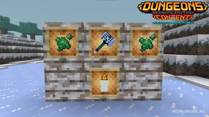Модификация представляет собой дополнительный контент для вашего мира, переносящий элементы и атмосферу Minecraft Dungeons. На данный момент добавлены новые существа и уникальные артефакты в ледяной тематике.
