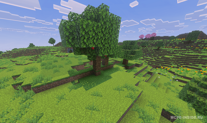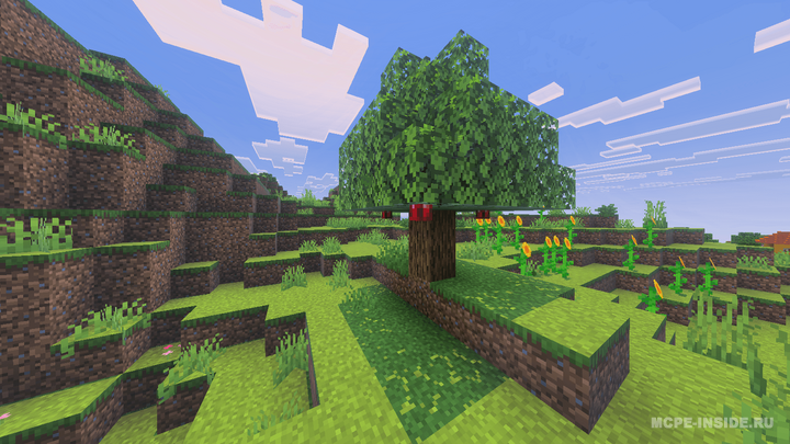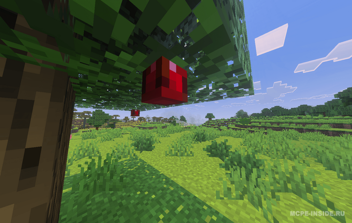 Данный мод добавляет в игру новые деревья, на которых естественным образом растут яблоки. Плоды проходят три стадии созревания, а игроки могут собирать урожай или использовать фруктовые блоки для декора.