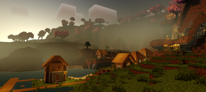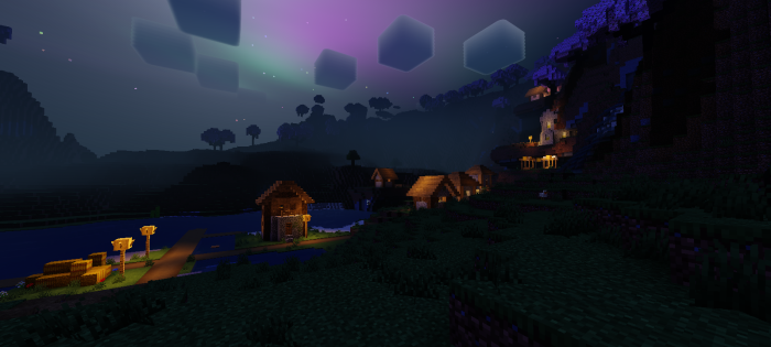 Newb X Blissful HDR — реалистичный шейдер, создающий кинематографичную картинку с золотистым освещением, контрастными тенями и яркими бликами. Он добавляет светящиеся руды, полярные сияния, насыщенные закаты и естественные цвета дня и ночи, улучшая визуальную атмосферу.