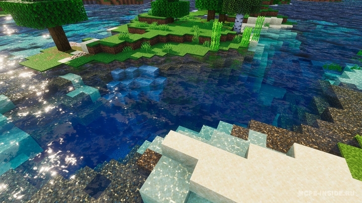 Шейдер потрясный, вода как настоящая. Шейдер подстраивает под биомы цветотипы. Просто топ.