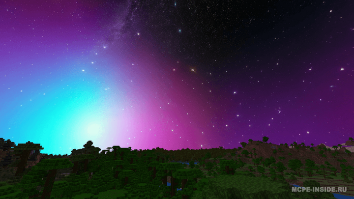 "Космос со звёздами" заменяет стандартное небо в Minecraft на живописный вид космоса с мерцающими звёздами, создавая атмосферу галактики. Доступны три варианта текстур с разным разрешением: 2048x, 1024x и 512x для тонкой настройки визуала.